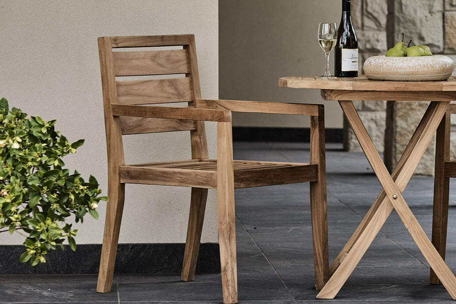 Yes, teak is naturally weather-resistant, low-maintenance, and ideal for tight or partially covered outdoor spaces. As a dense, oil-rich hardwood, it repels moisture and resists sun damage. This makes it a smart long-term investment for balconies exposed to varied conditions. Whether you opt for classic plantation-grown teak or sustainably sourced reclaimed teak, you’ll benefit from a surface that matures beautifully over time.