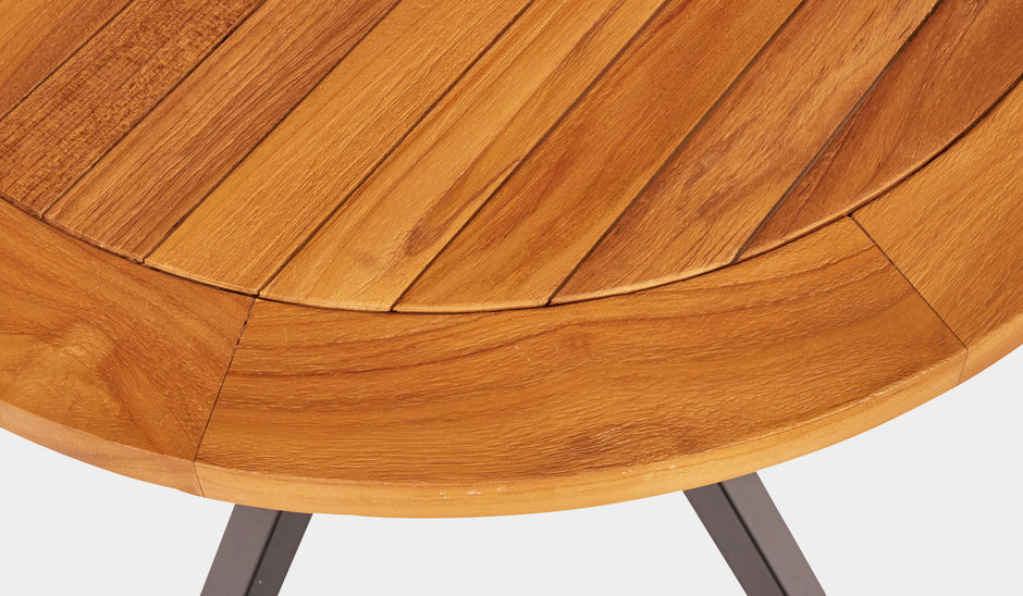 Yes, teak is naturally weather-resistant, low-maintenance, and ideal for tight or partially covered outdoor spaces. As a dense, oil-rich hardwood, it repels moisture and resists sun damage. This makes it a smart long-term investment for balconies exposed to varied conditions. Whether you opt for classic plantation-grown teak or sustainably sourced reclaimed teak, you’ll benefit from a surface that matures beautifully over time.