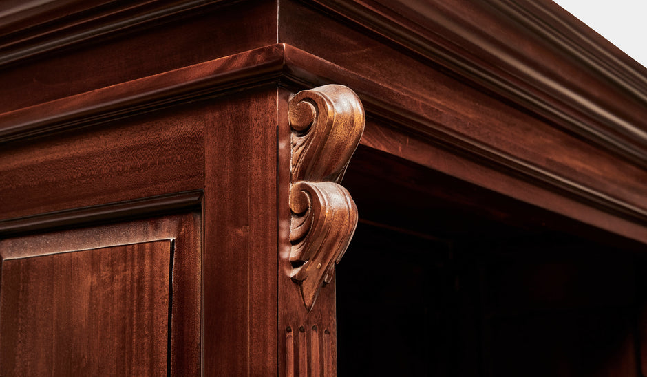 Home office furniture bookcases are designed to hold a wide range of volumes and display your collection. The shelves are constructed using solid wood, and the frame is carved to match the design of each shelf.