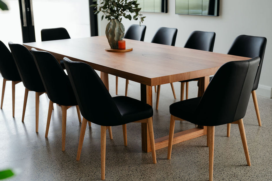 Whether you’re after a rectangular or rounded dining table, you’ll find a variety of small and large messmate and oak dining tables at Woodbury. Lunches, brunches or dinner parties, now you can host and enjoy mealtime while exuding understated style and contemporary aesthetics with our handmade dining tables.