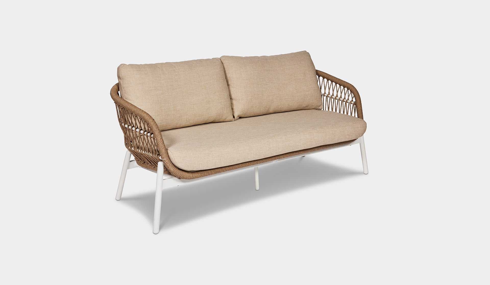 Step into a world of outdoor opulence with the Ibiza Collection.Glossy white hues add a touch of class to the Ibiza 2 Seater Sofa; crafted with intricate precision and featuring synthetic twisted rattan for a look that's truly unique.