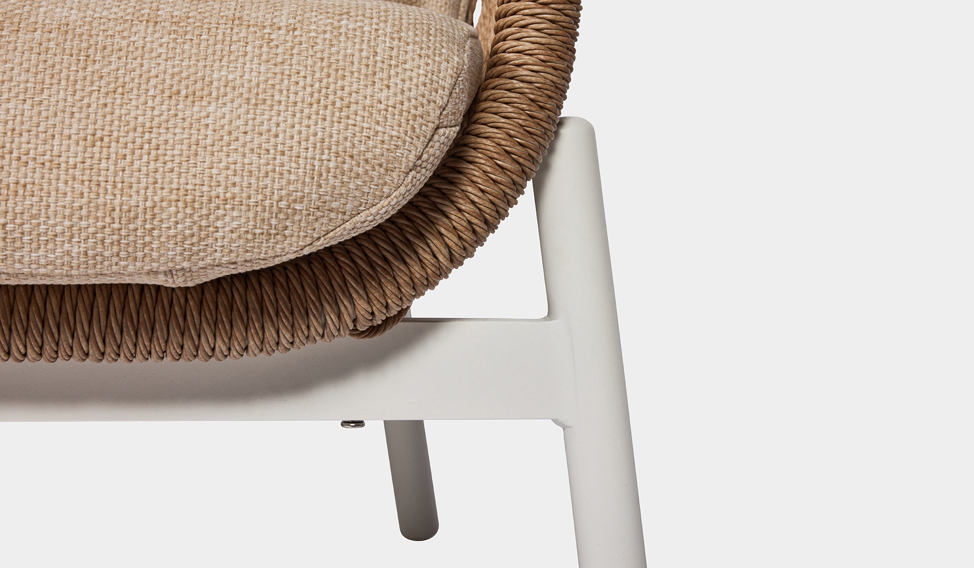 Experience tranquil lounging with the Ibiza 2 Seater Rope Sofa. Crafted with precision and featuring a unique design of synthetic twisted rattan and powder-coated aluminum. Embodying boldness and sophistication, this lounger offers ergonomic excellence, superior comfort, and impressive looks.