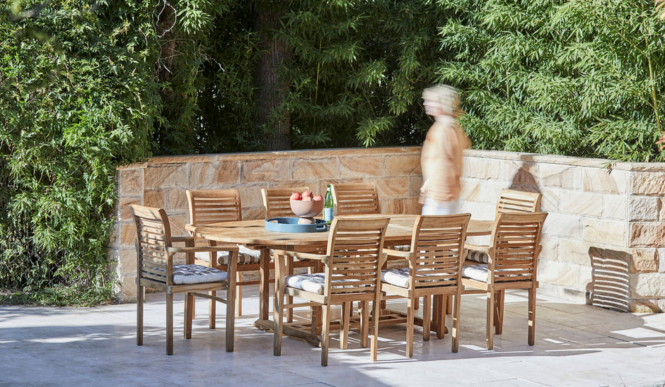 Blaxland 9 Piece Teak Oval Extending Outdoor Setting with Armchairs