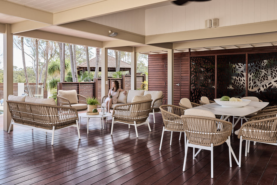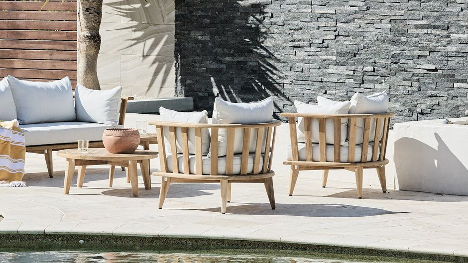 Create a welcoming retreat with outdoor lounge settings from Woodbury. Enjoy cushioned leisure in any climate. Pair with outdoor ottomans or outdoor side tables for cozy vibes.