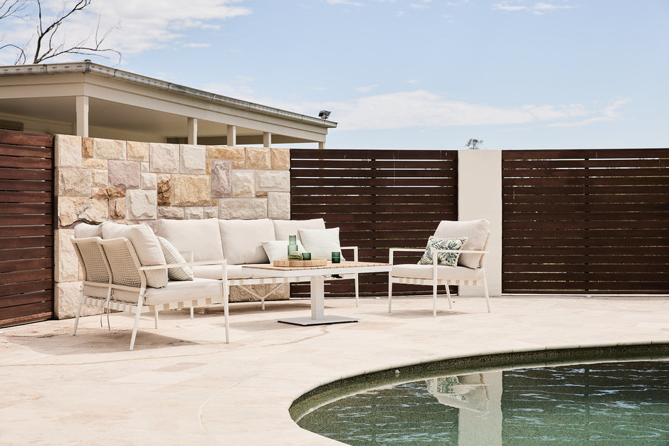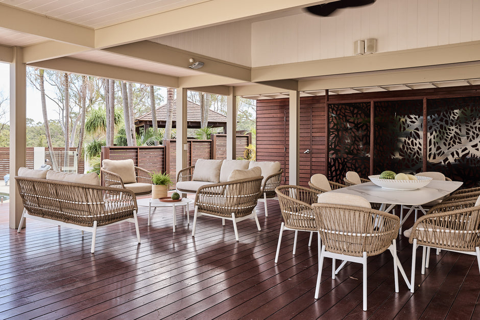 Sink into rope outdoor lounges from Woodbury. Enjoy stylish support and weather-ready weaves. Explore rope outdoor furniture or outdoor lounge settings for laid-back relaxation.