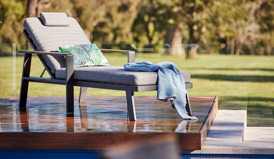 - Style — Opt for a sun lounge that matches your personal style and complements your existing outdoor furniture. It’s always a good idea to stylise your furniture with durable, high-quality outdoor cushions to add comfort and style to your outdoor spaces.