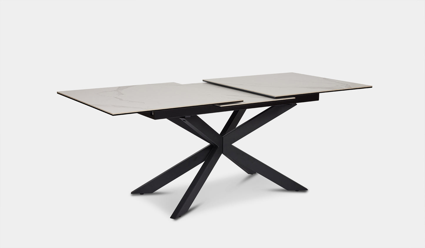 Discover the ultimate dining experience with Abby Ceramic Glass Indoor Extendable Dining Table. Seats 6-8, metal powder-coated legs, pop-out extension mechanism. Available in stylish dark grey. Elevate your dining area now!