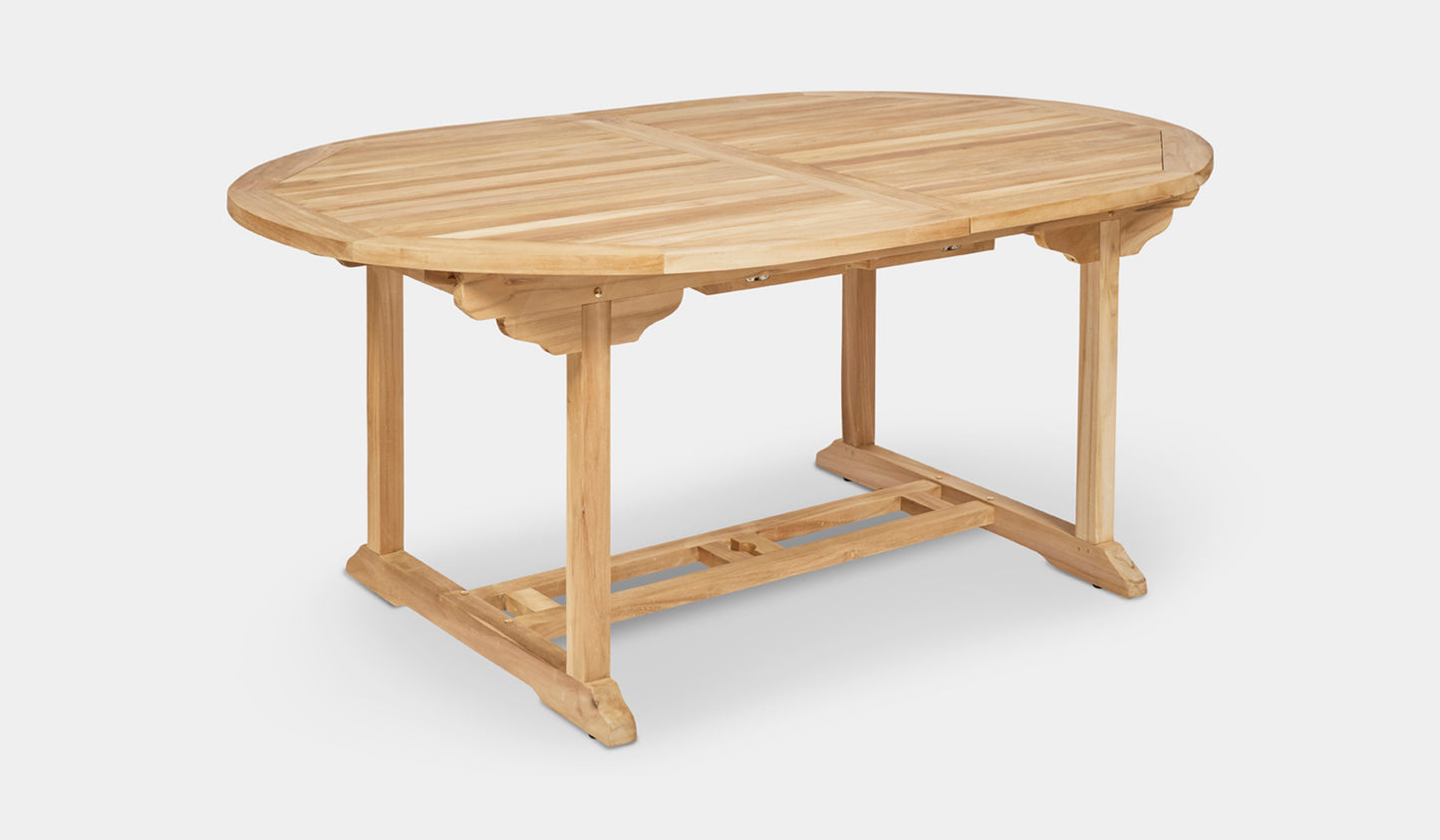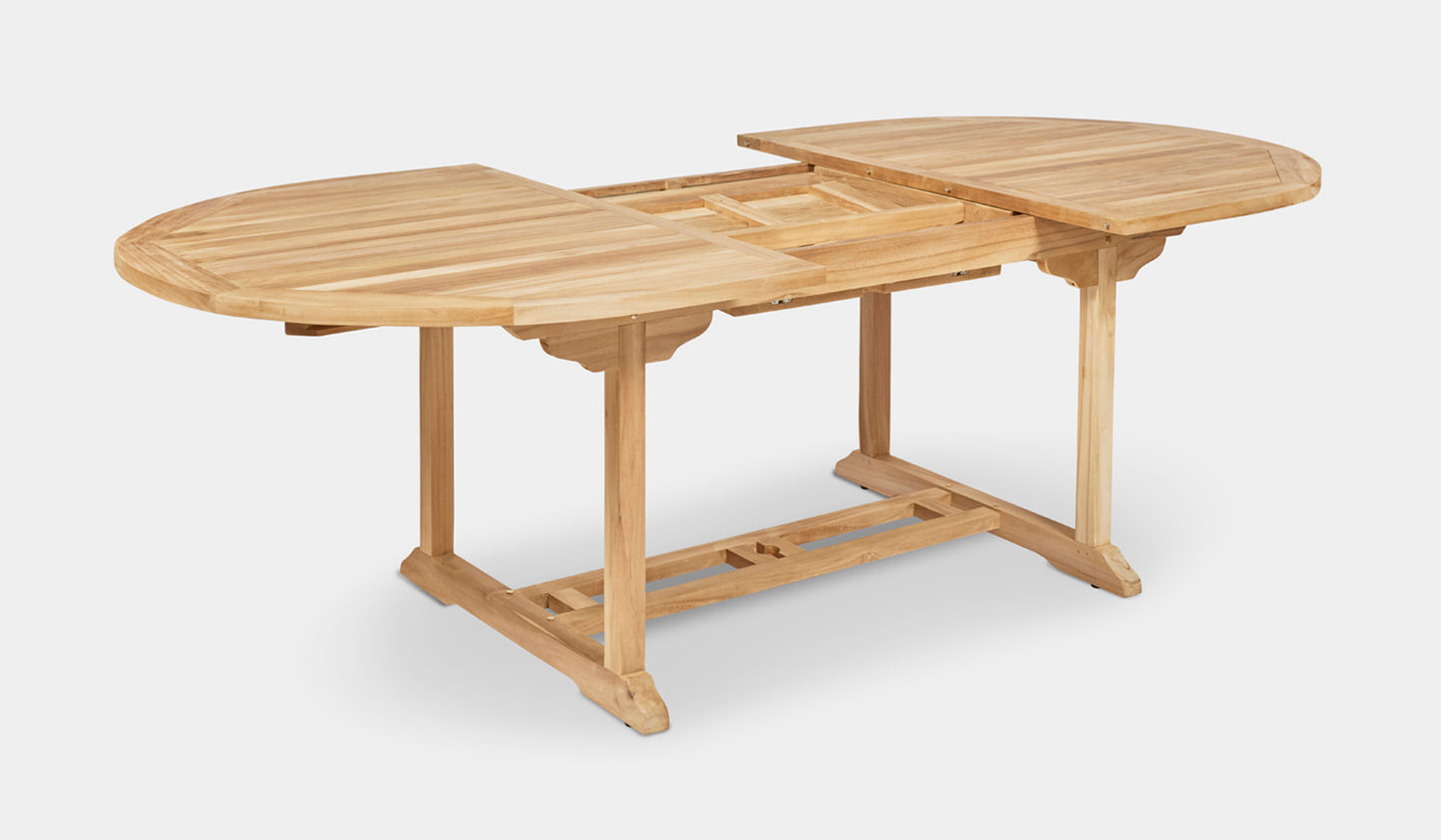 Teak Oval Extending Dining Table - W: 120cm, D: 180-240cm, H: 76cm