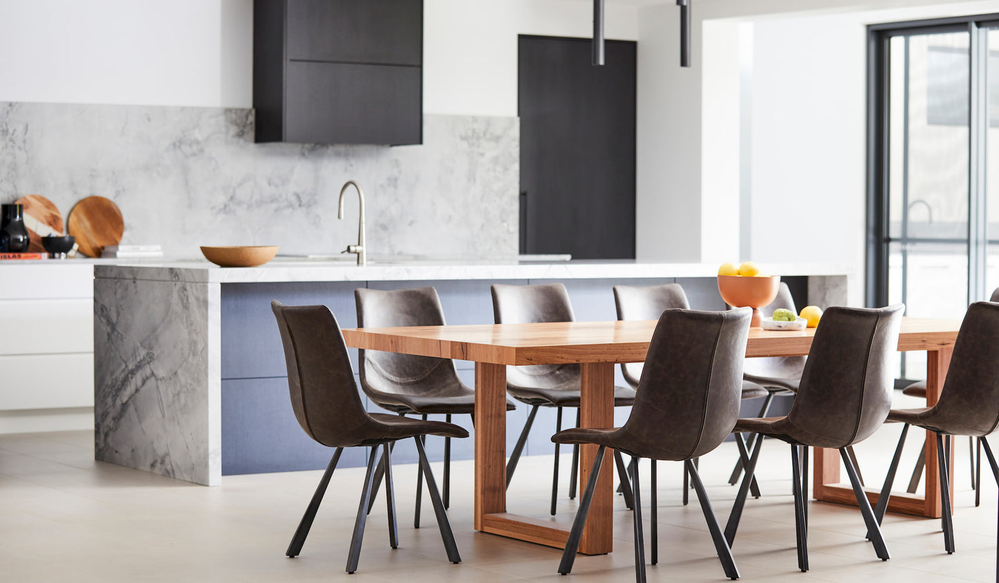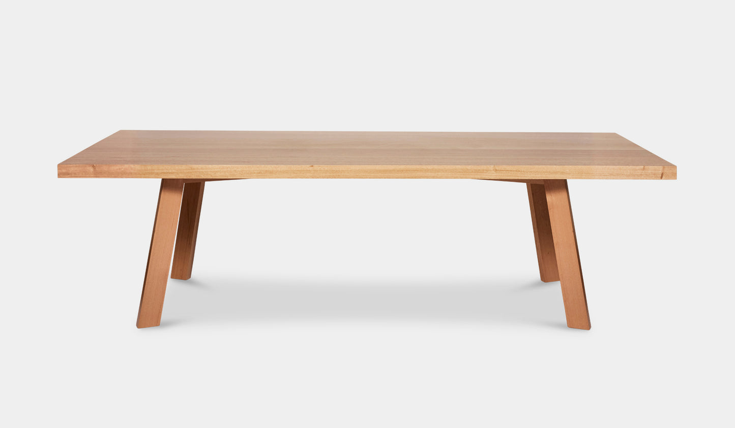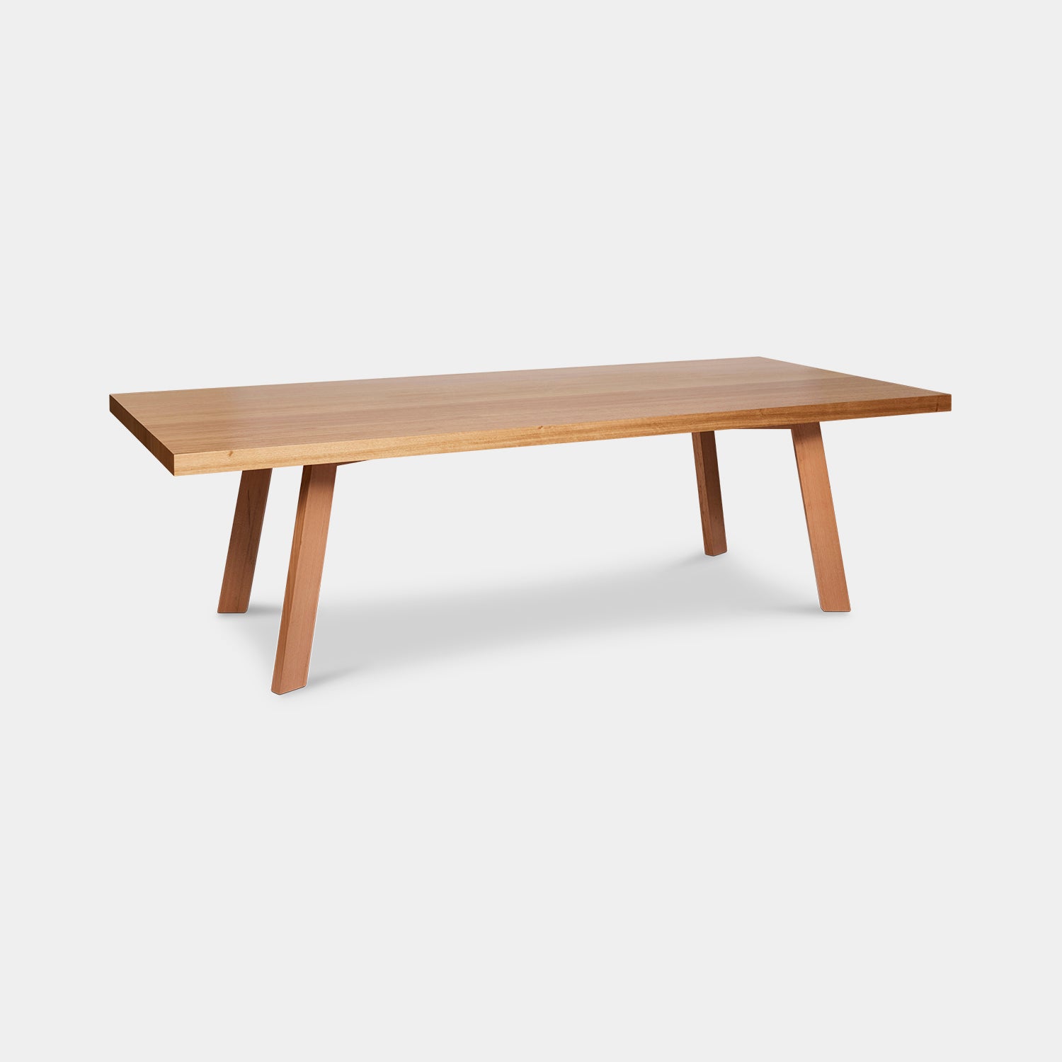 Impressive and modern, the Brooklyn dining table in Tasmanian Oak stands out with its beautiful blonde oak color and angled legs. Customize and choose from Messmate timber as well.