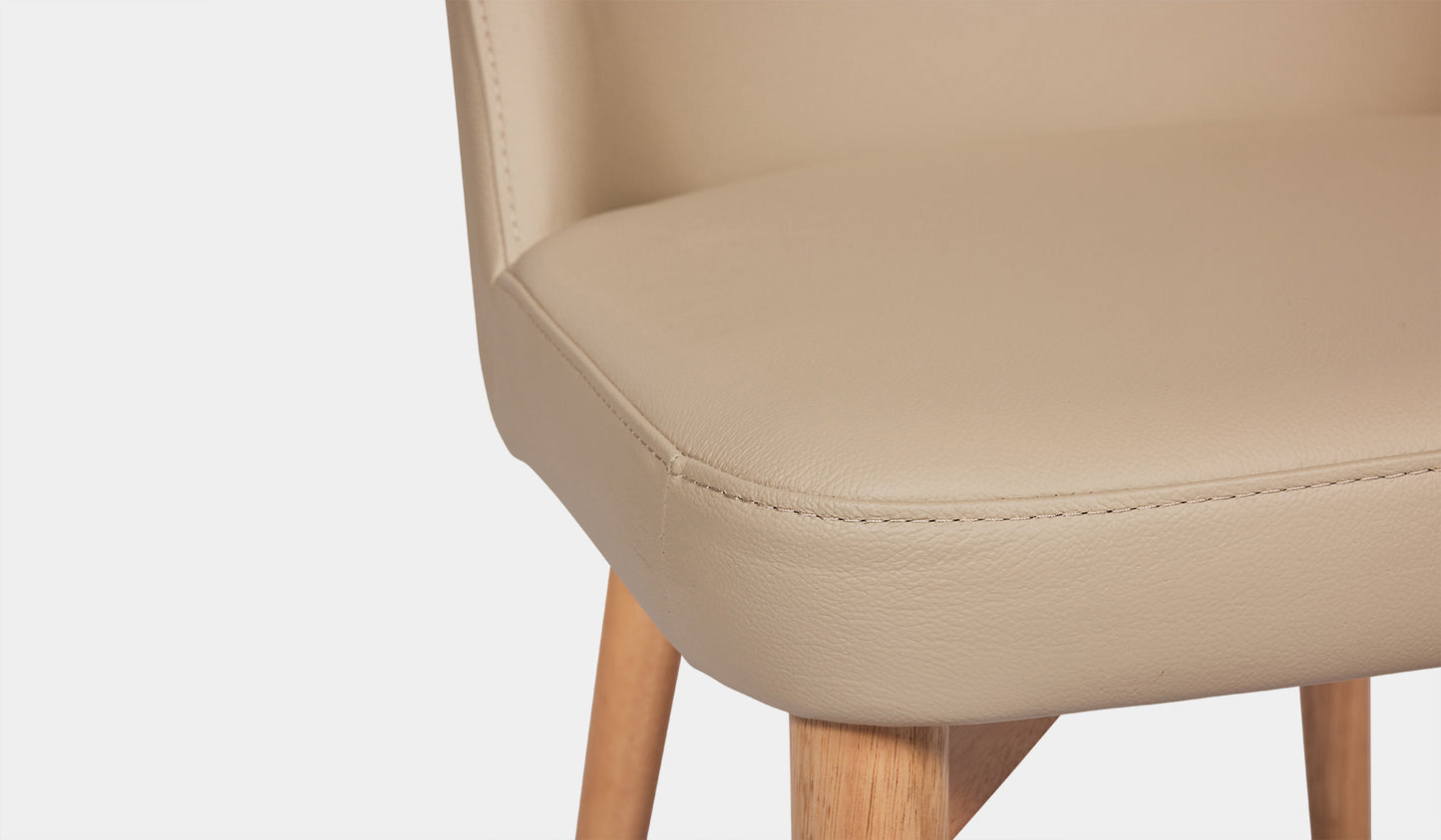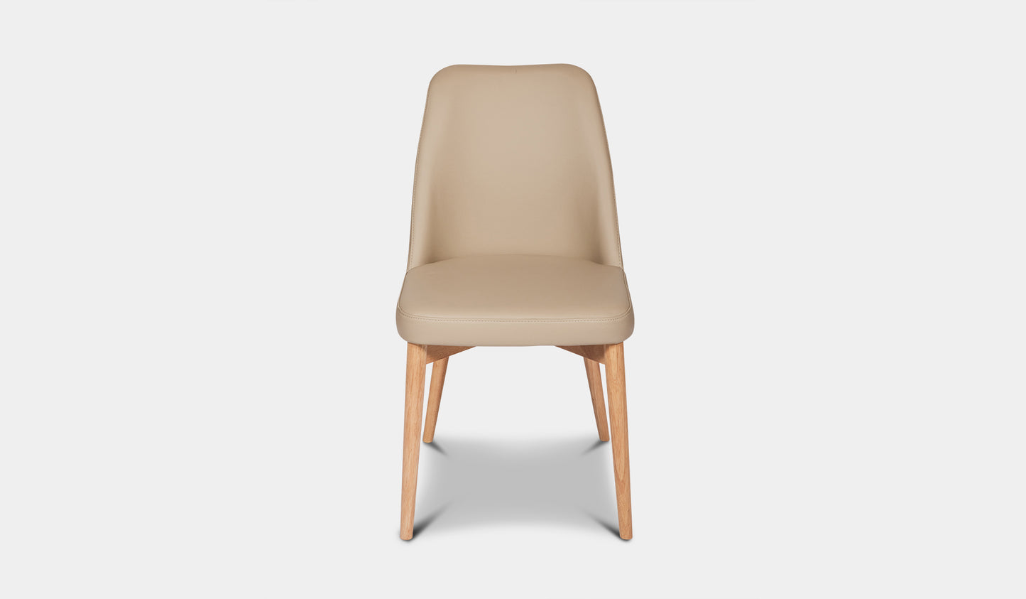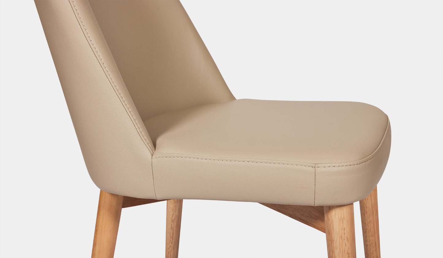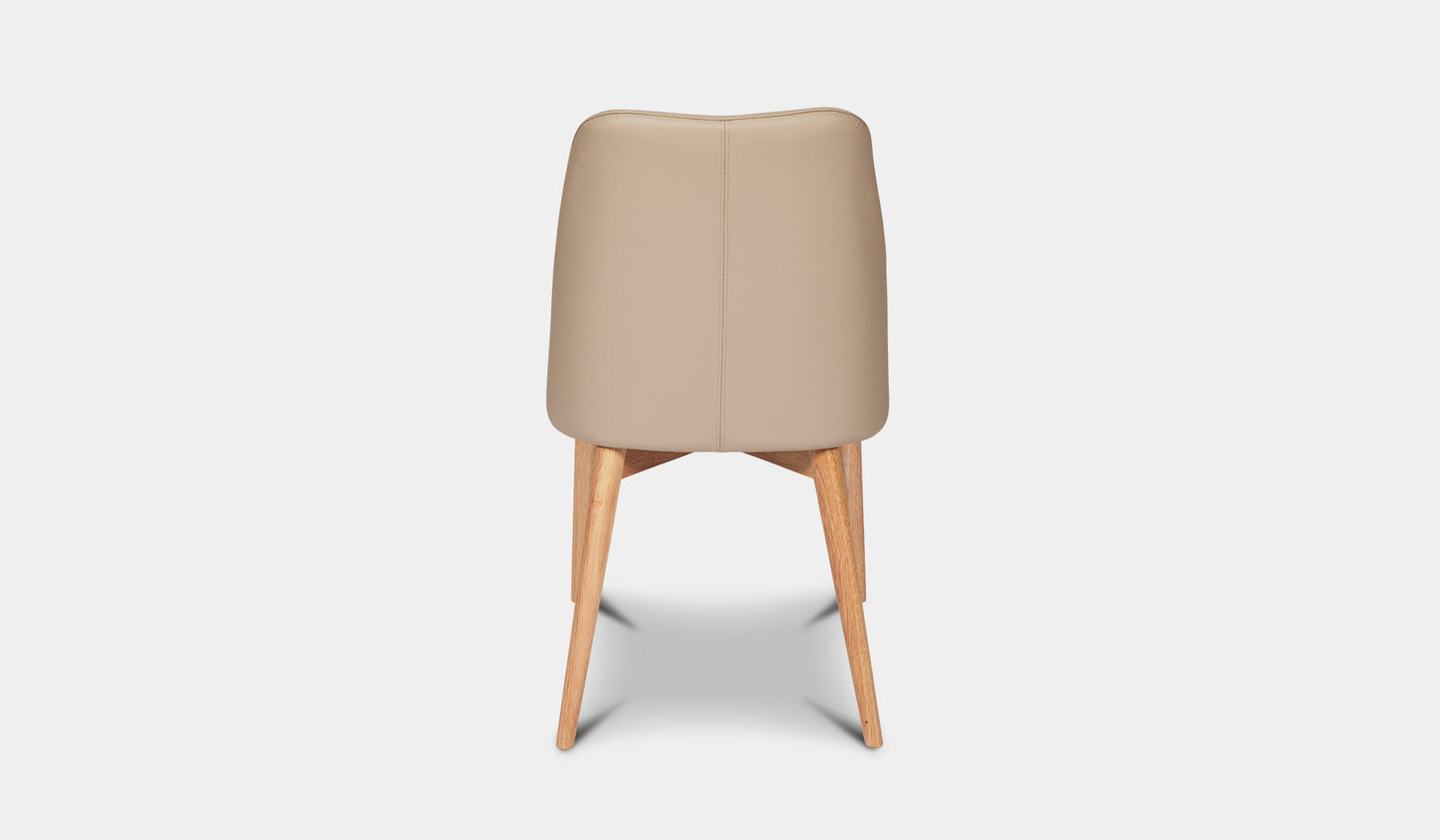 Experience luxury and sophistication with the Conrad Dining Chair in mocha leather. Personalize it with two leg colors to match your decor. Elevate your dining experience to the next level!