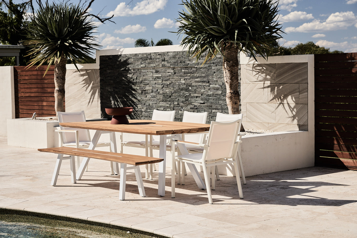 Elevate your dining room with the stylish Rockdale 200cm Teak dining table in white. Add a touch of "cool factor" to your dining room with this timeless and chic table. Please refer to the full product description for more information about condition and warranty.