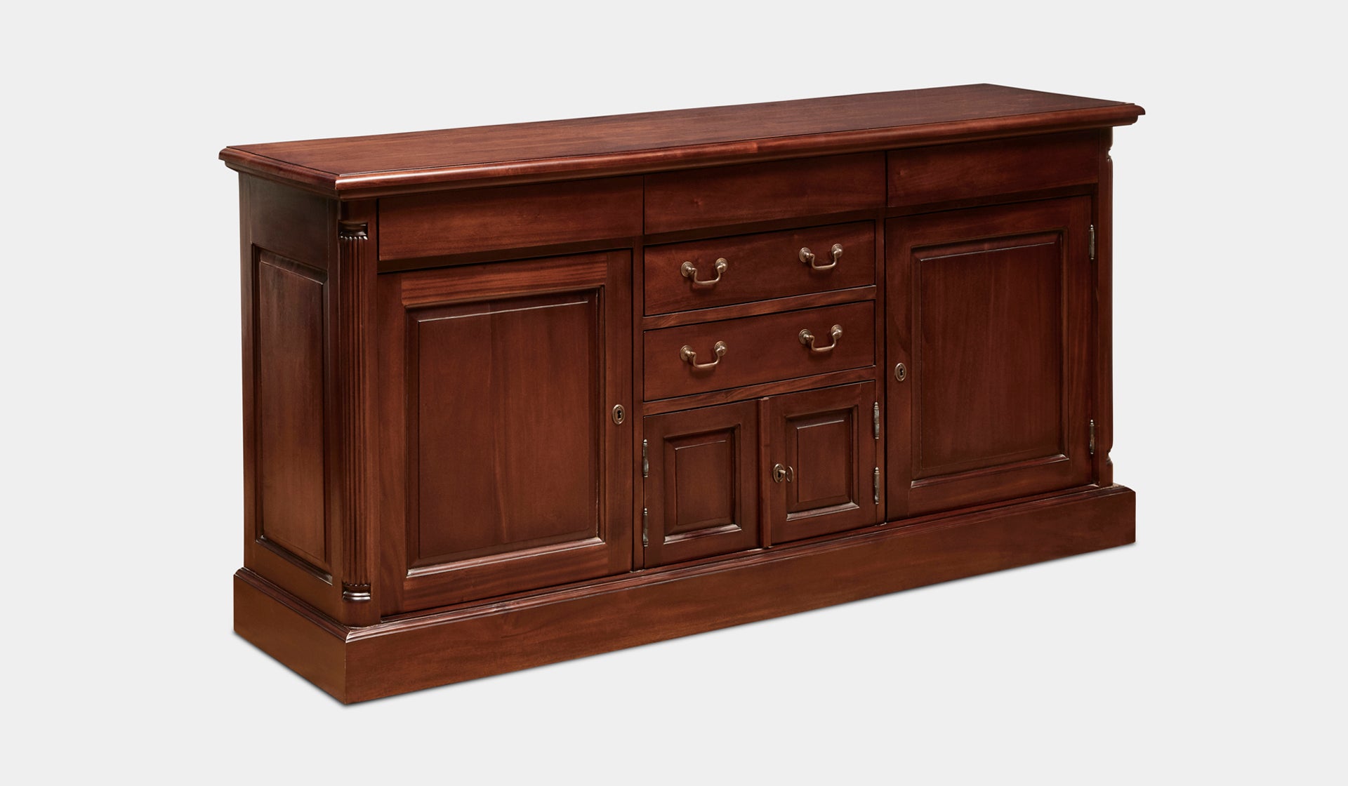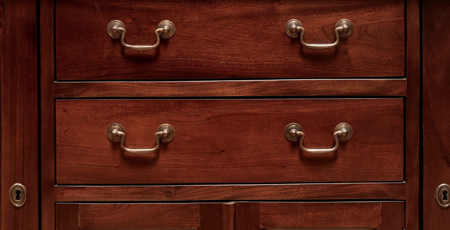 This Crystal Classic Buffet exemplifies the beauty of handcrafted workmanship and classic design aesthetic. The Crystal collection imbues nature's signature utilising the finest solid mahogany hardwood. Made to a high quality standard, this buffet will not only remain timeless in style, but is built to last and become a family heirloom.