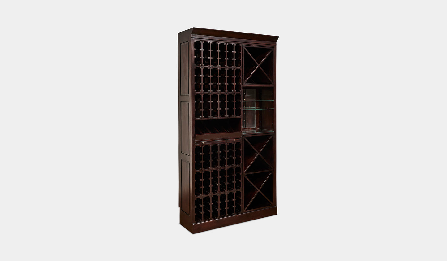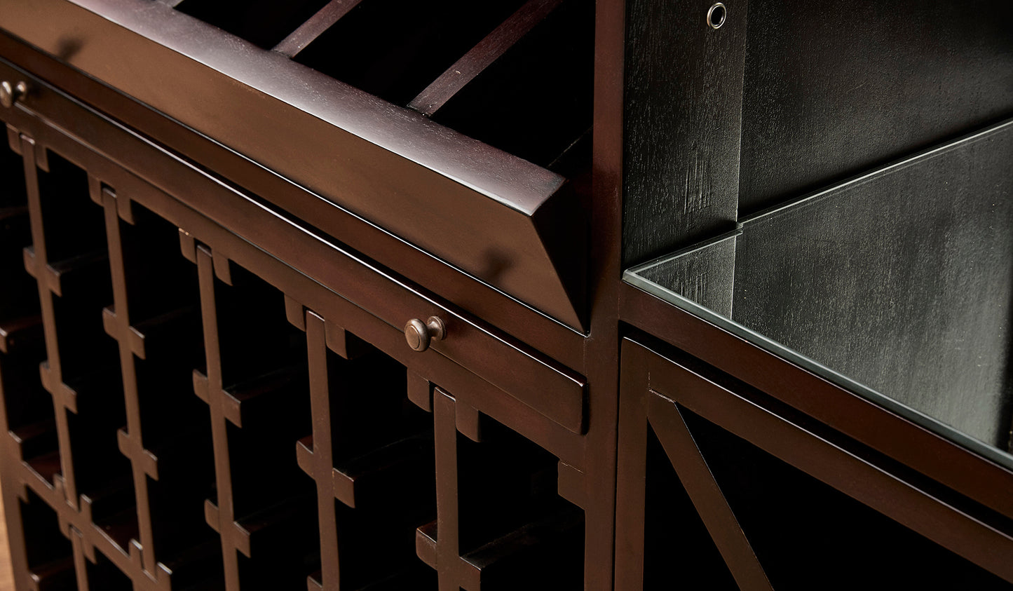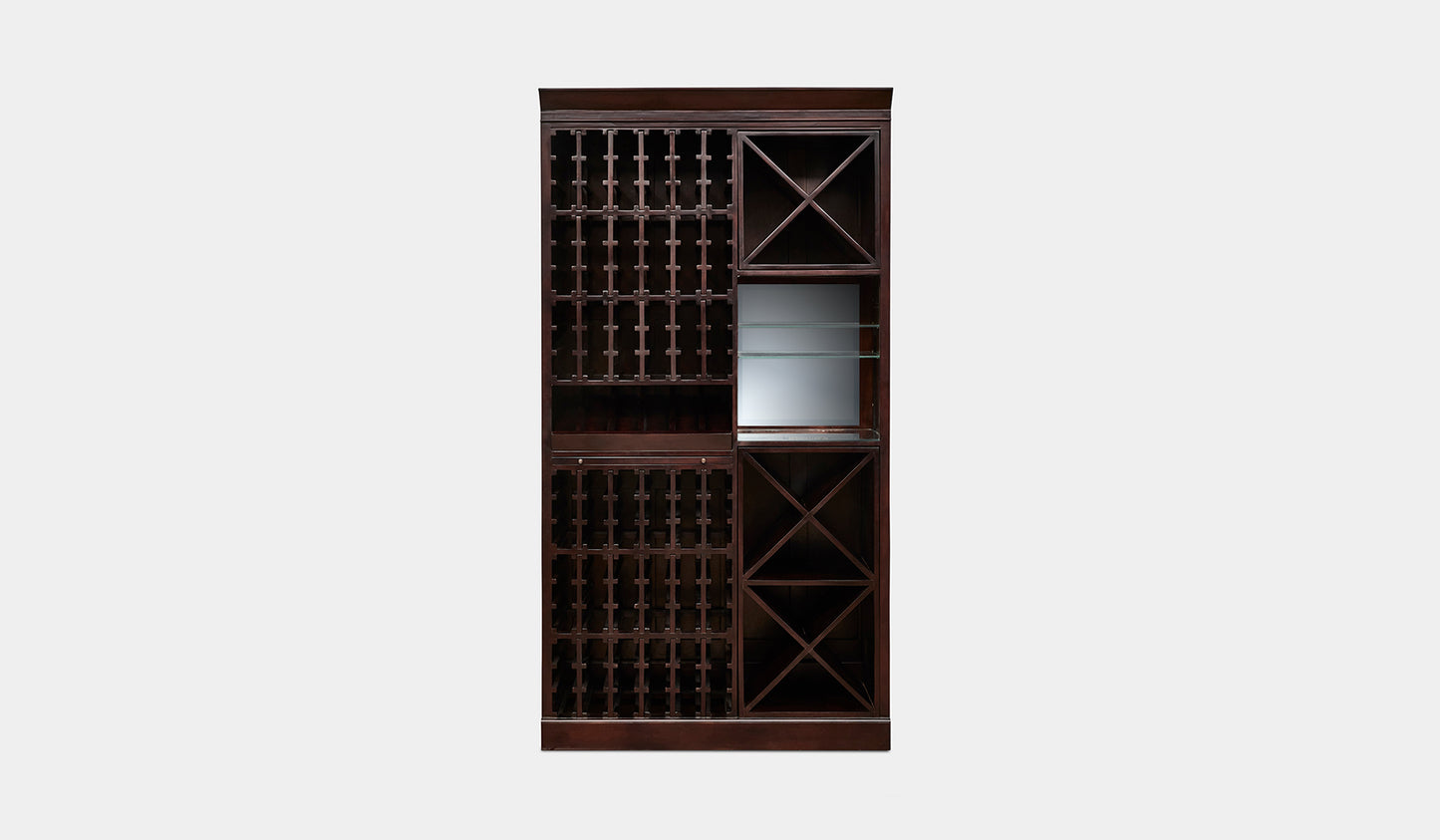 Capacity to store up to 180 bottles, as well as pull out bar tray and display, makes the Everingham Wine Rack one of our most exquisite bespoke pieces. It can be customized to fit any space and is available in standard colours of tea brown and light tea brown, with an approximate 16 week lead time for other colours. Our staff are available to assist with further specifications.
