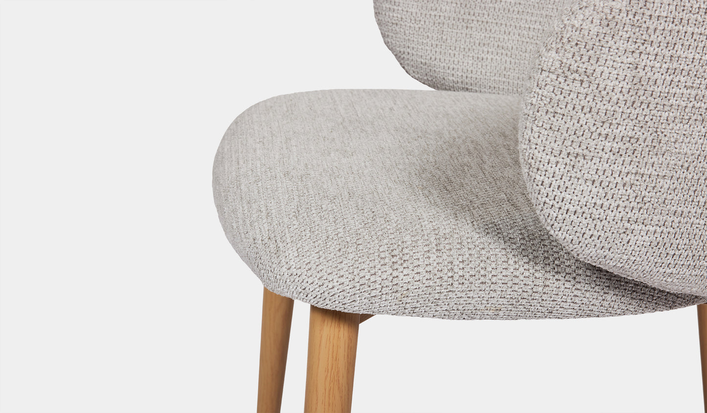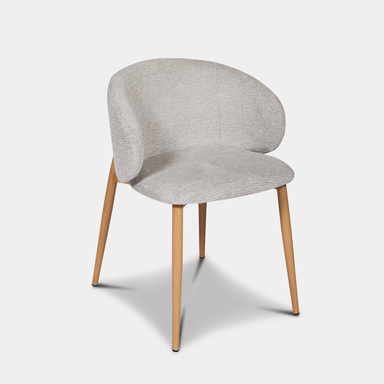Experience true luxury and elevate your dining experience. The Kayla Dining Chair boasts a chic and elegant design with a beautiful beige fabric and sleek metal legs in an oak finish. Not only does it add sophistication to any room, but its comfortable design will embrace you with beauty and grace. Indulge in the ultimate combination of style and comfort.