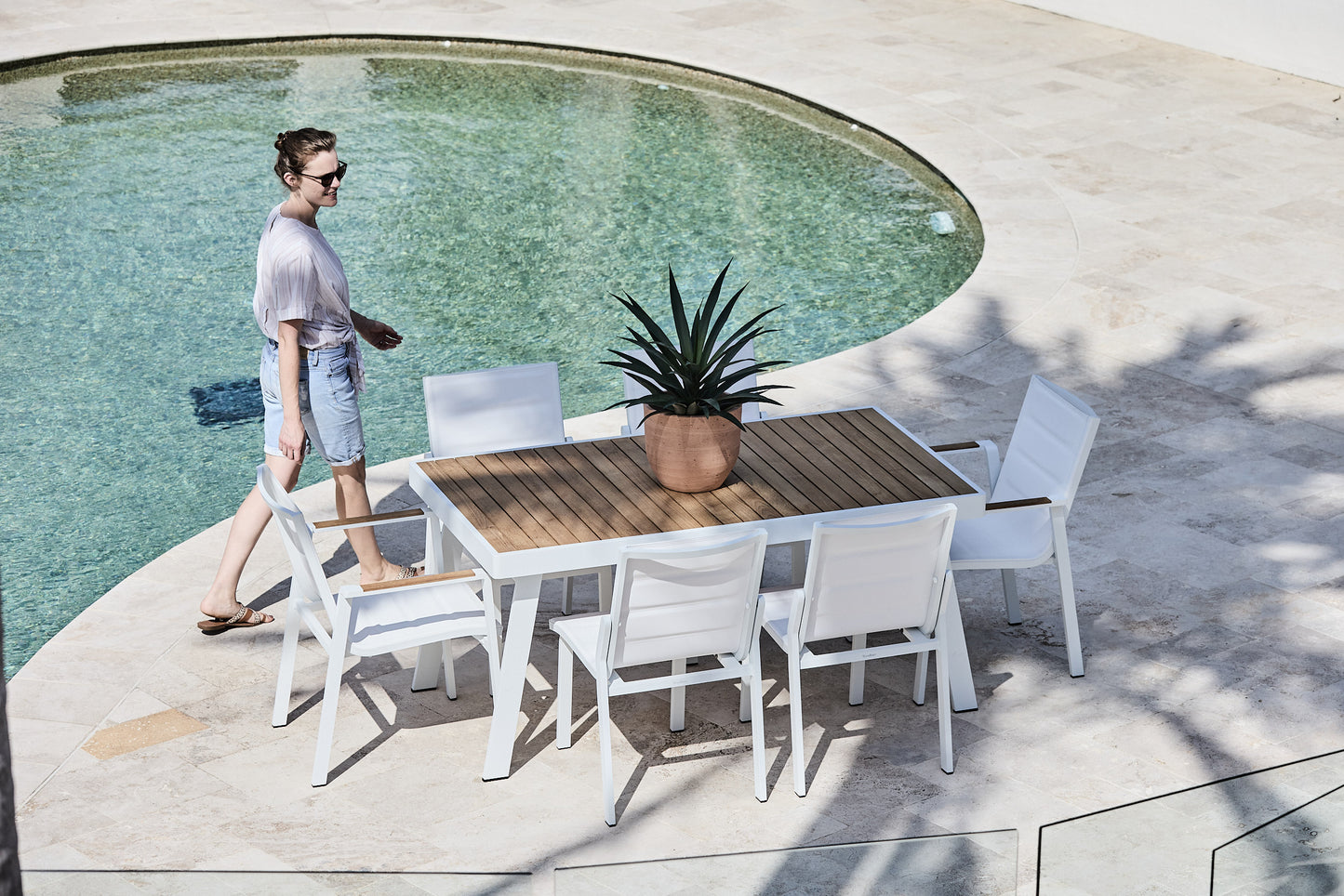 The Noosa Dining Table is new to the Woodbury Collection and is inspired by our best selling Kai Range. The Noosa Dining Table is perfect for tighter spaces and features a mix of solid teak on a thicker edged aluminium frame. It pairs perfectly with any of our aluminium chair options and seats 6 people very comfortably. Also available in Charcoal.