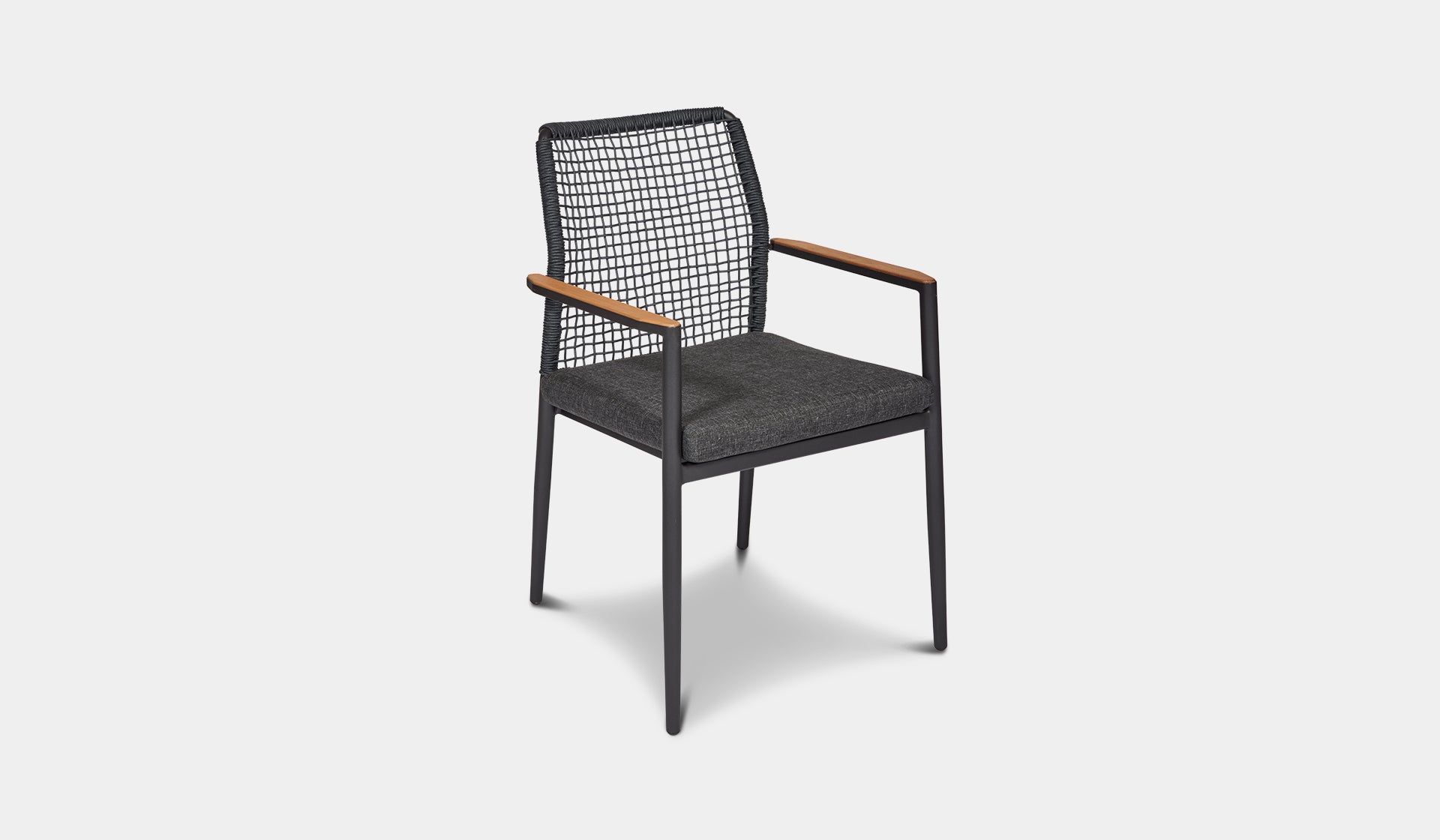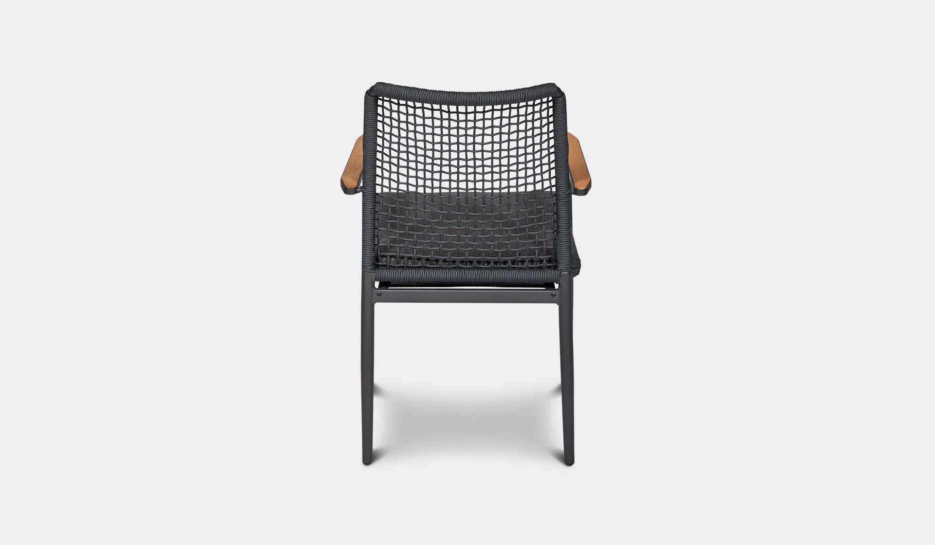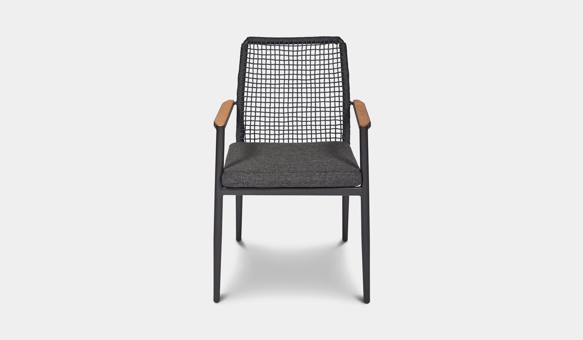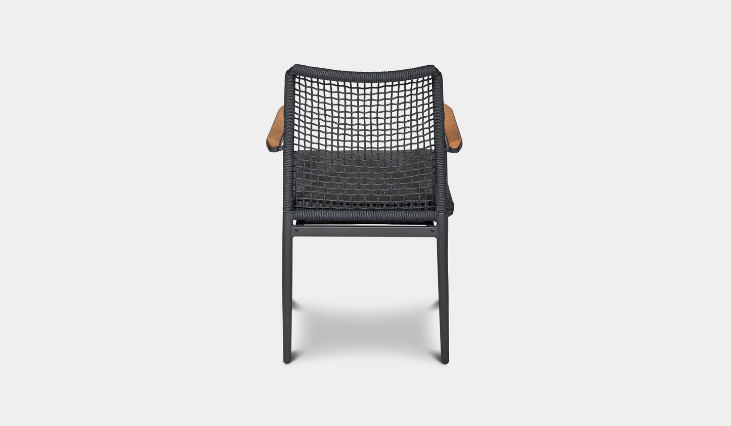 Transform your outdoor dining area with our Santiago Dining Chair. Crafted with an aluminum frame and charcoal rope, it adds a touch of sophistication to any setting. And as an added bonus, it's stackable for easy storage!