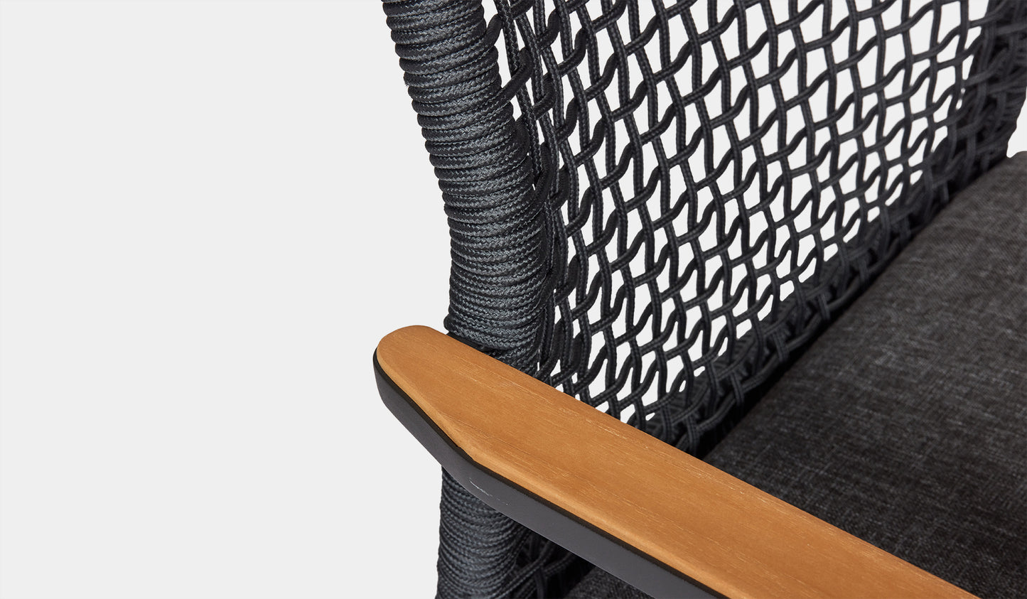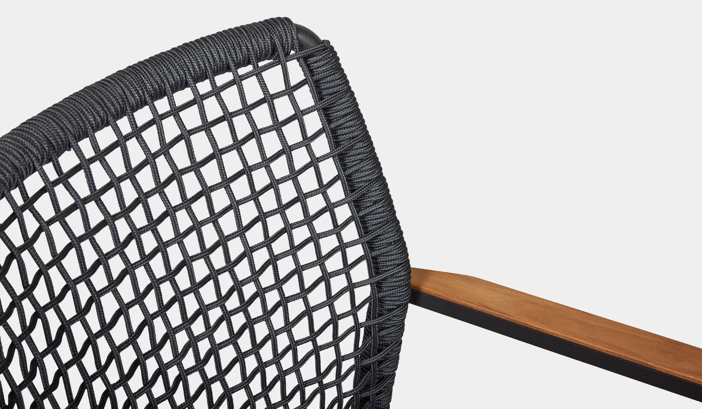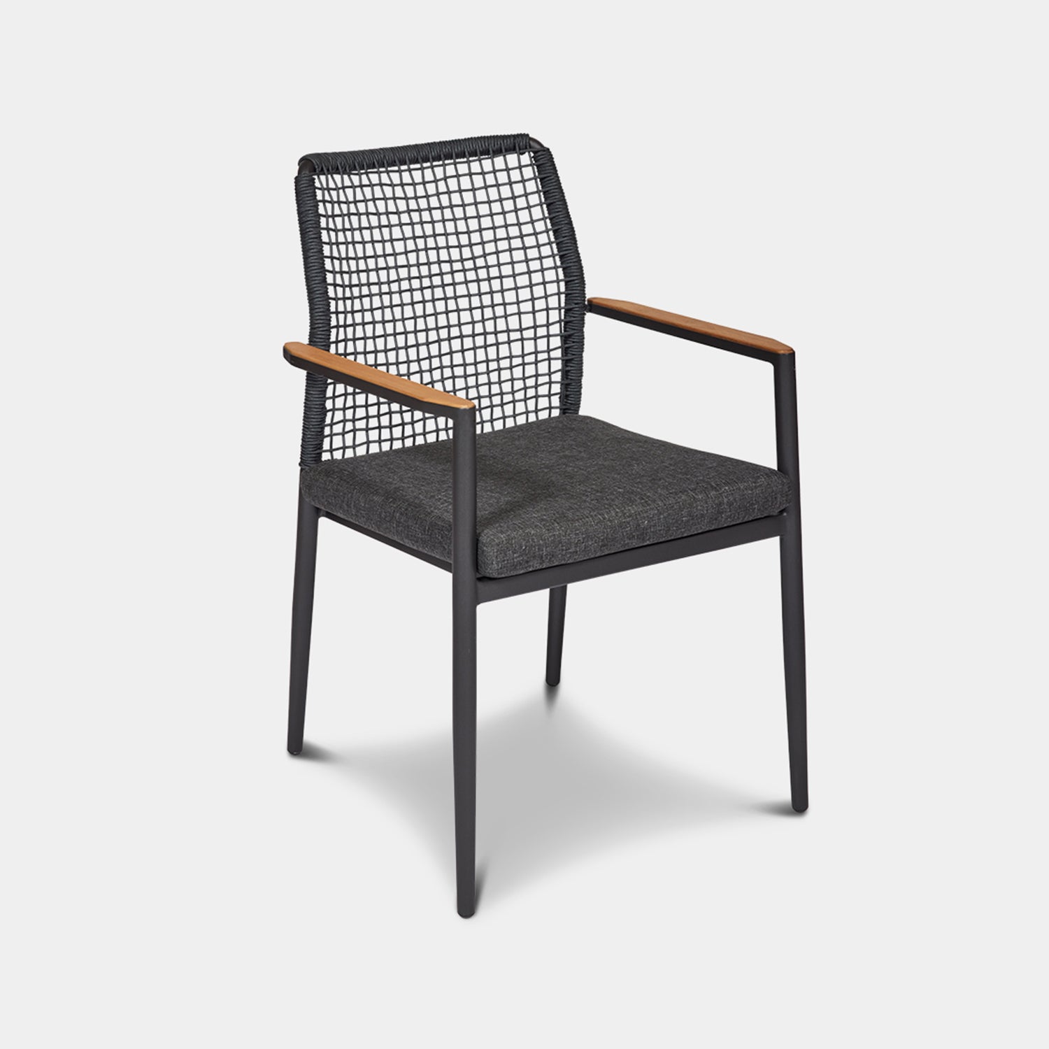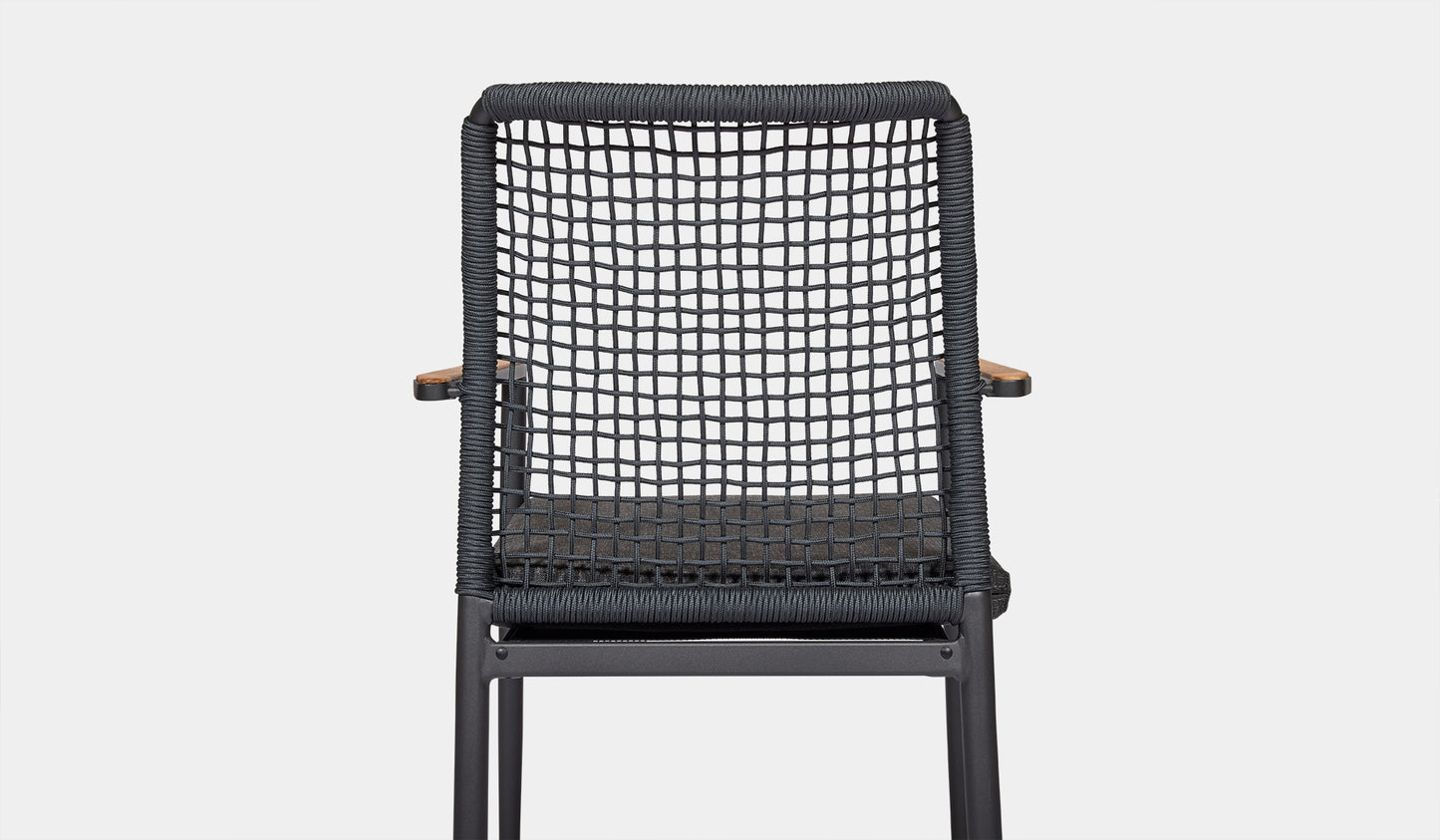 Transform your outdoor dining area with our Santiago Dining Chair. Crafted with an aluminum frame and charcoal rope, it adds a touch of sophistication to any setting. And as an added bonus, it's stackable for easy storage!