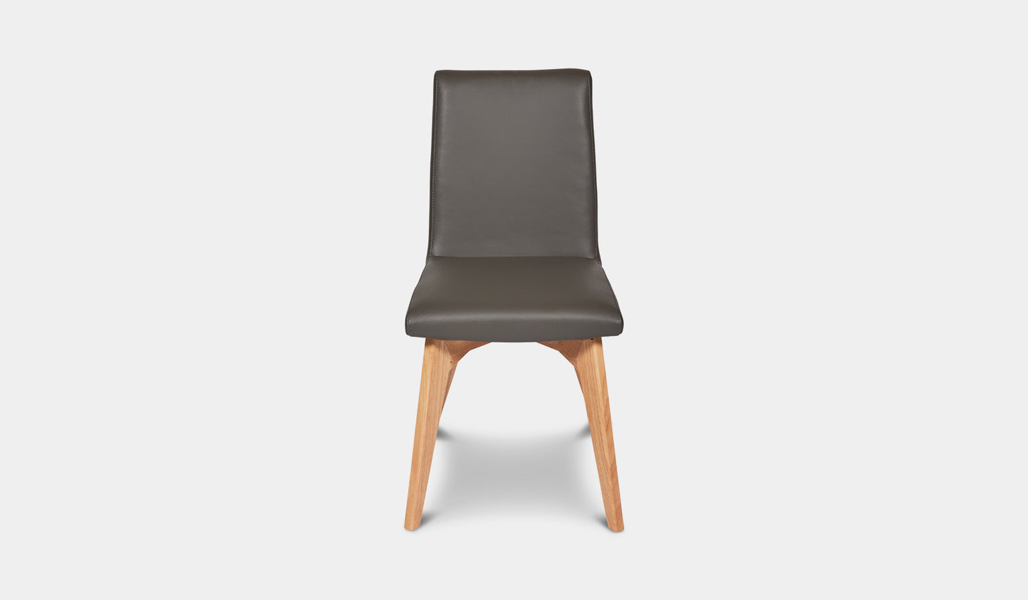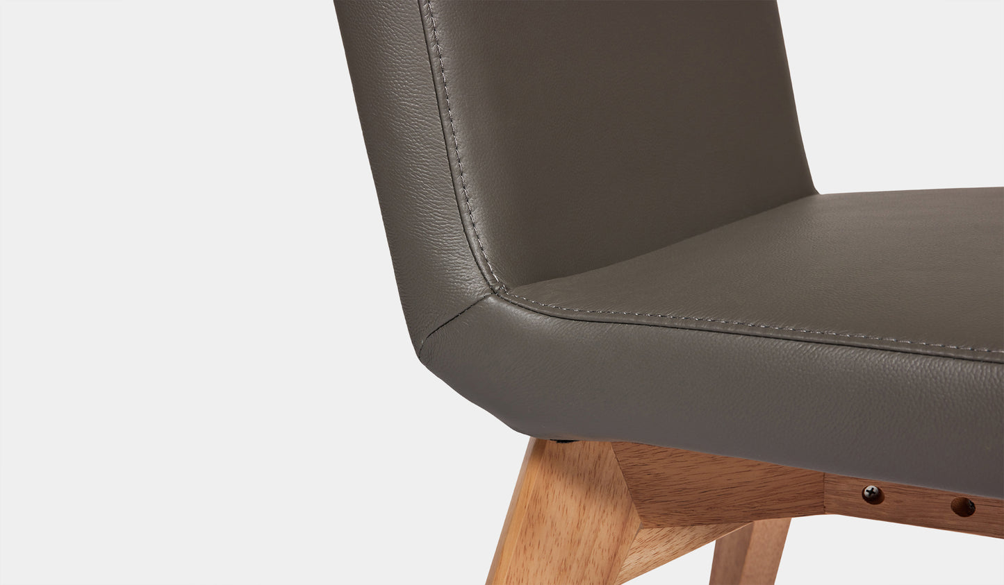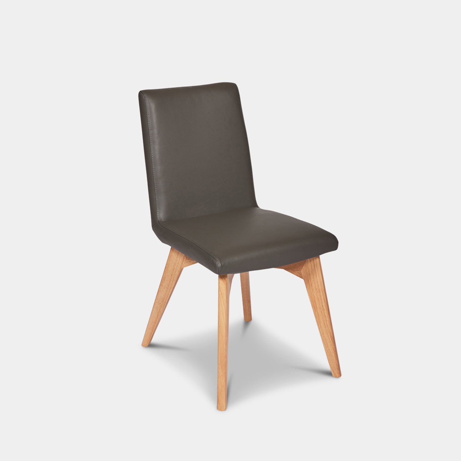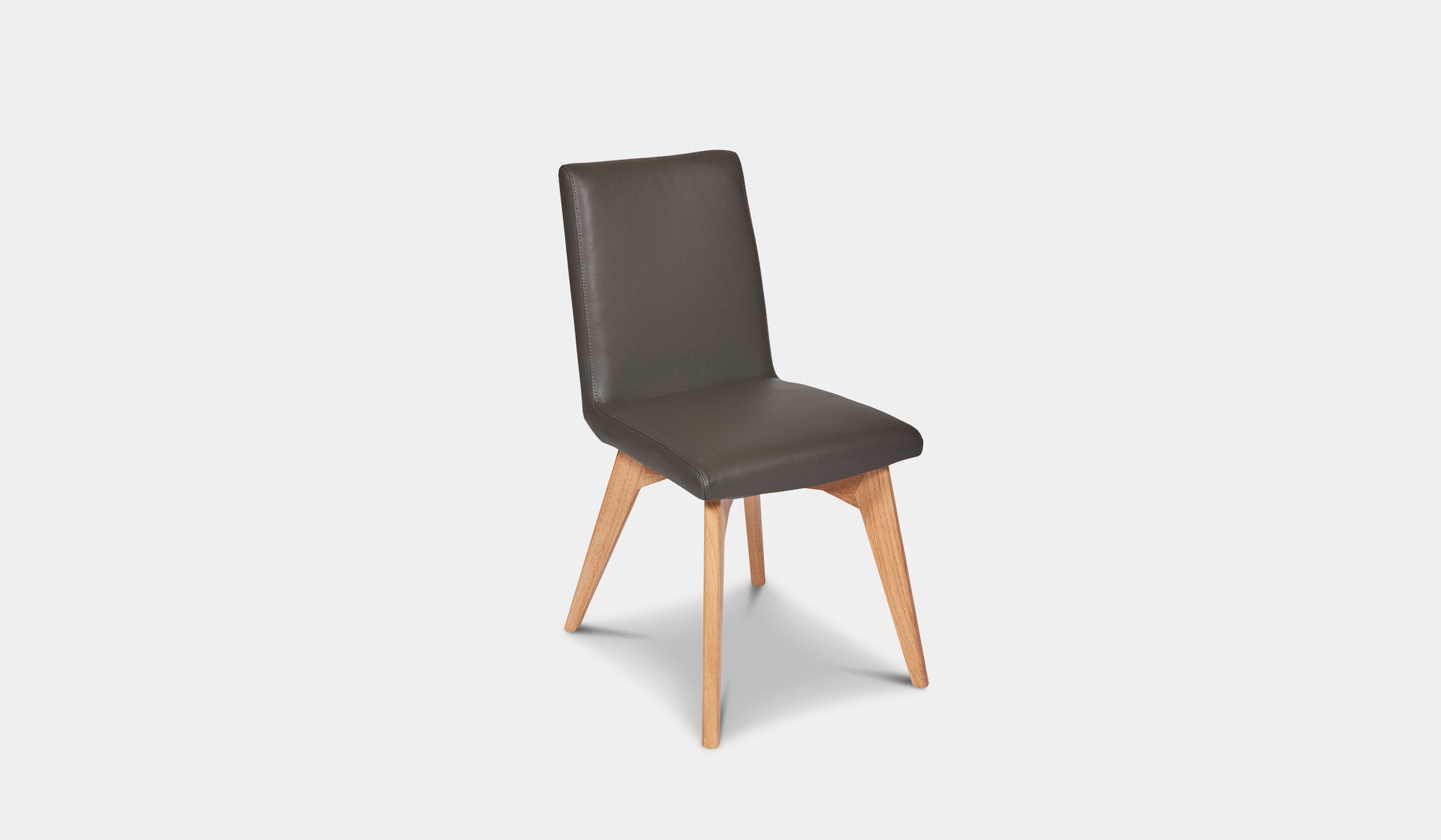 Elevate your dining experience with the Conrad Dining Chair in luxurious grey leather. Choose from two leg colors to perfectly complement your decor. Indulge in ultimate comfort and style now!