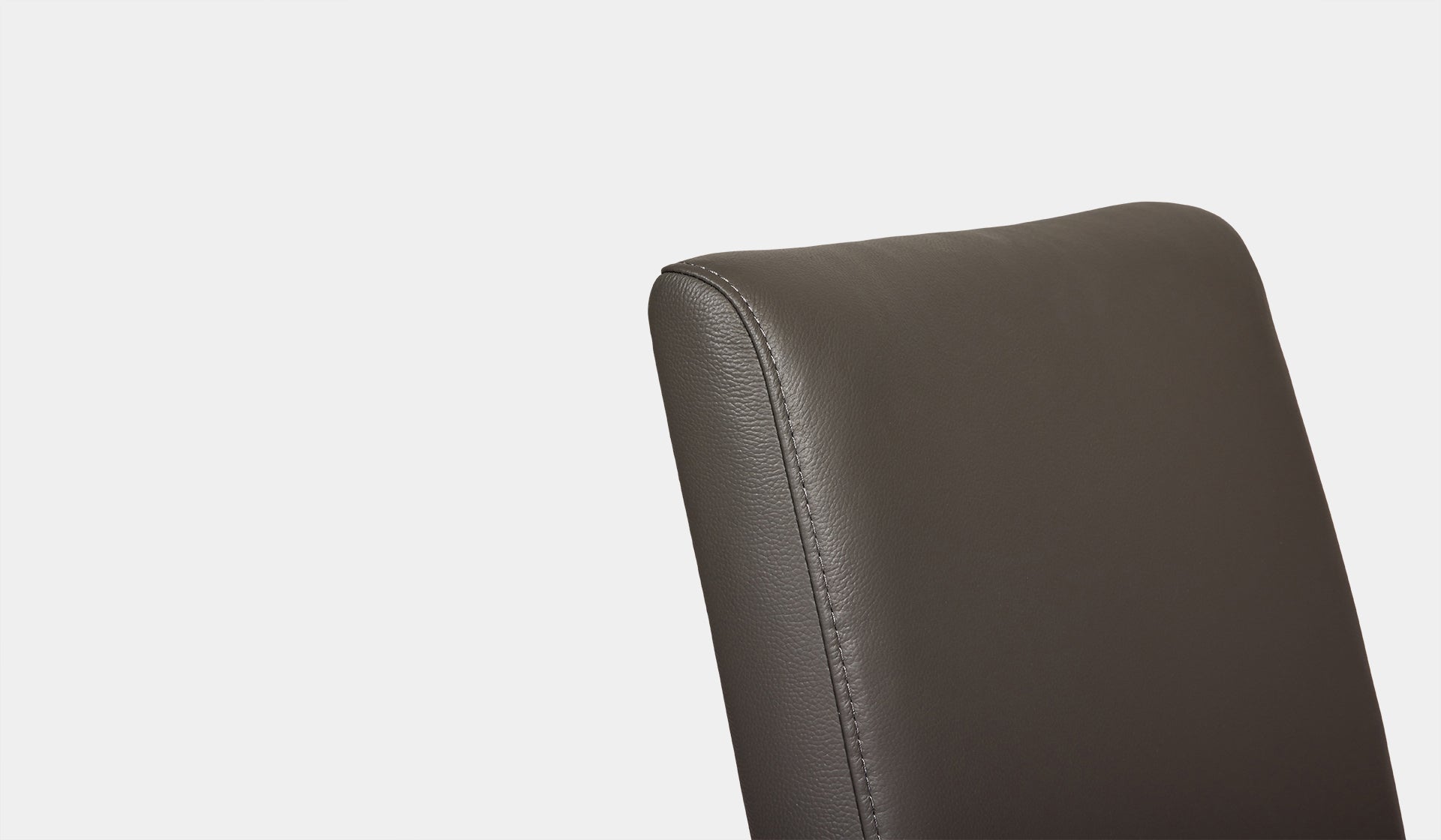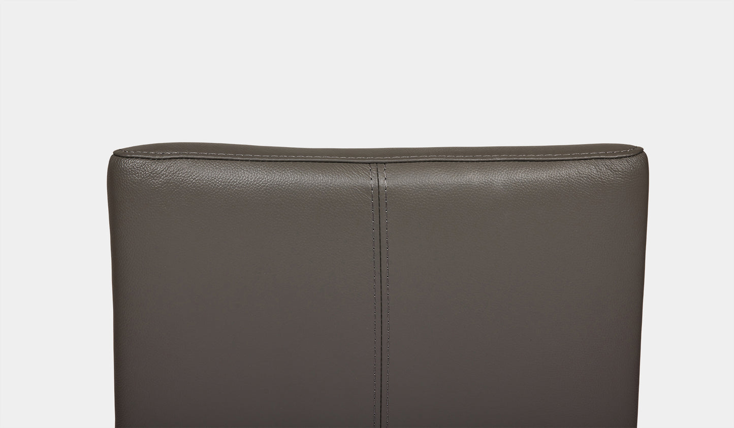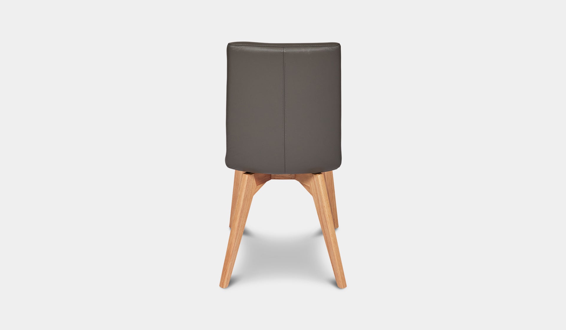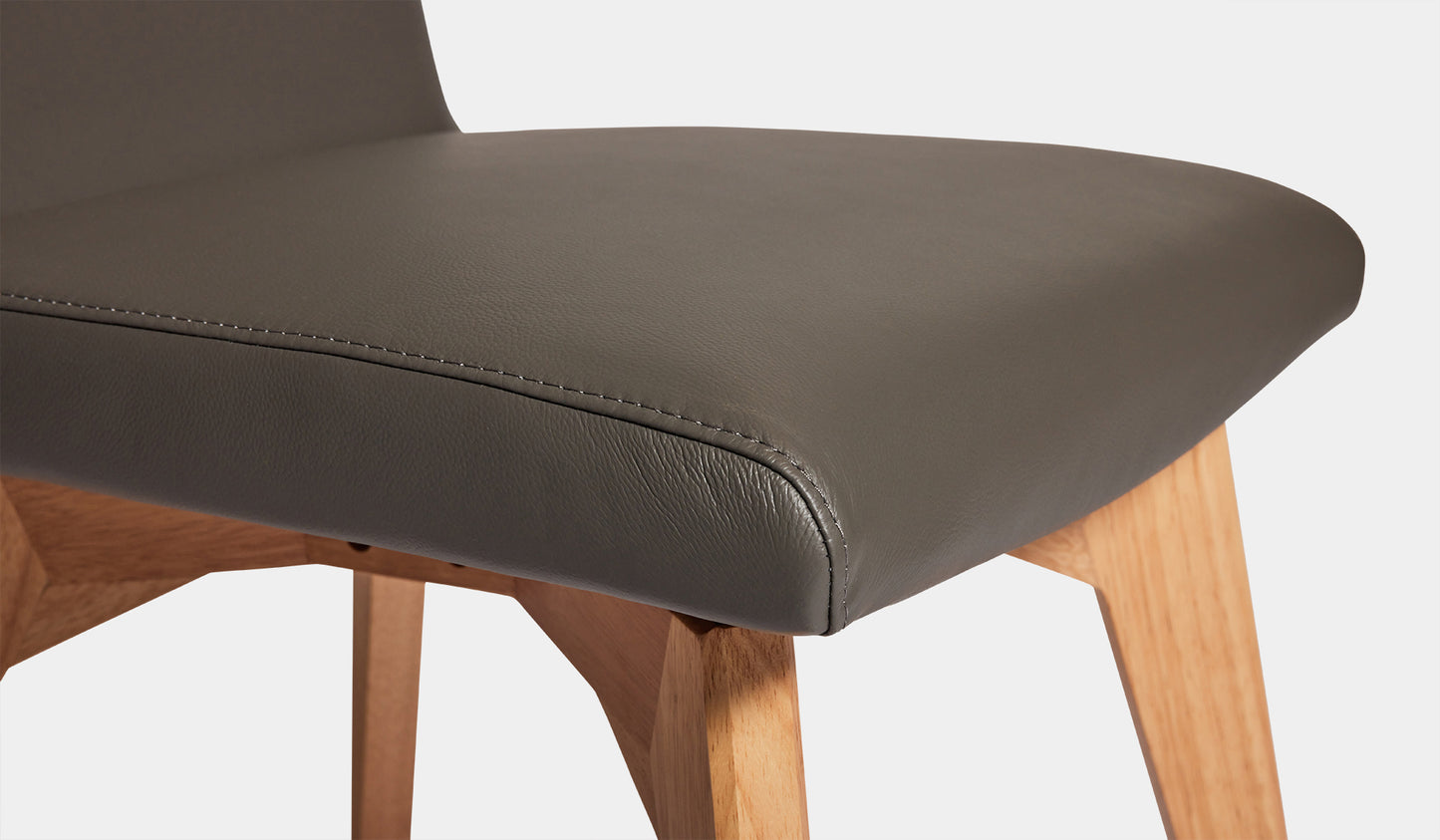 Elevate your dining experience with the Conrad Dining Chair in luxurious grey leather. Choose from two leg colors to perfectly complement your decor. Indulge in ultimate comfort and style now!
