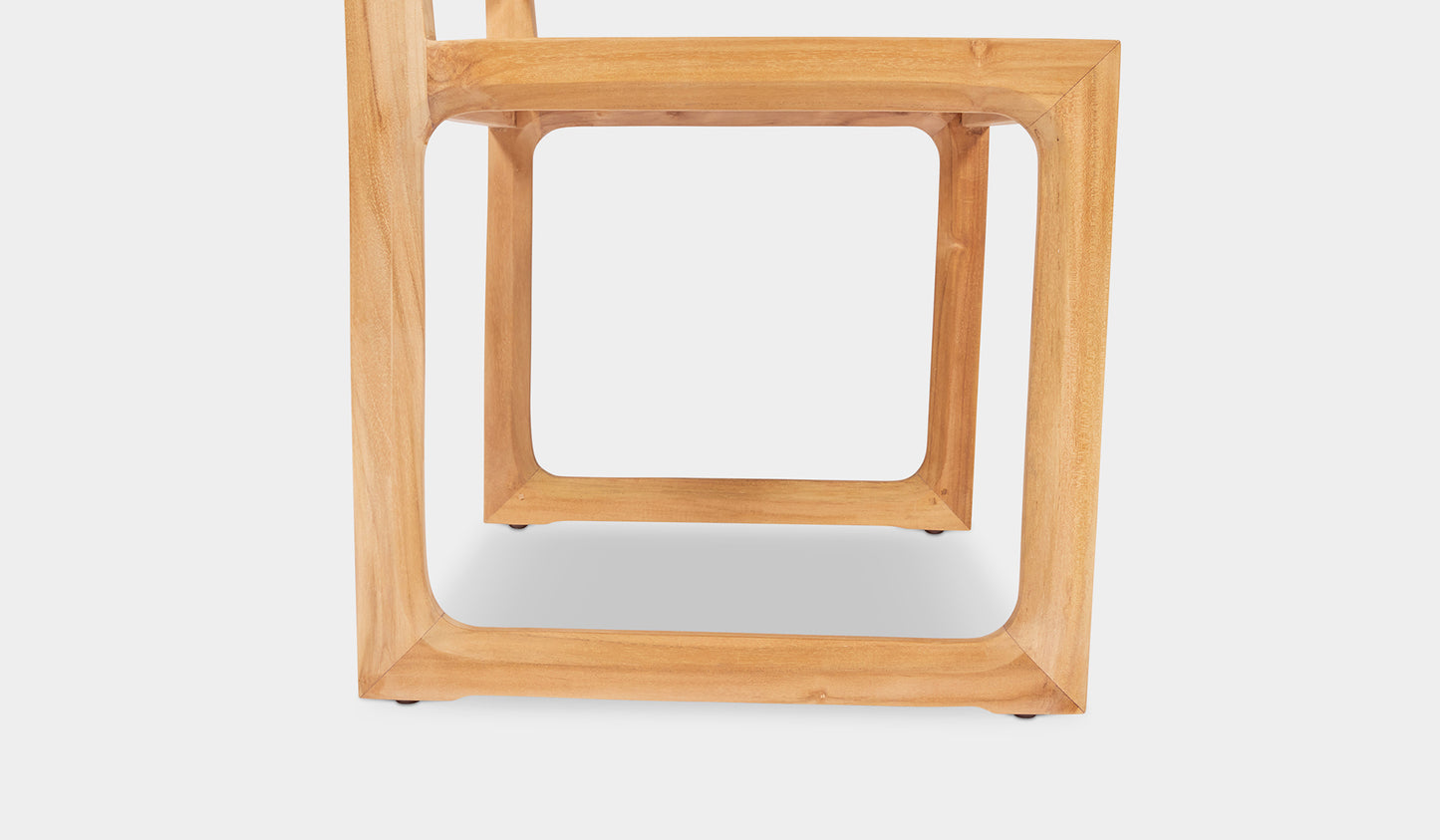 Experience the Mykonos Side Chair in teak - its plush comfort and eye-catching square ski leg design will add vibrancy to any setting. Bring out the best of Mykonos tables, or mix and match with our other teak pieces. Or for an even more comfortable chair, opt for the sister style with arms! Its bold construction and distinct ski-legs combine for an unforgettable combination of style and comfort - make your mark and stand out from the crowd with an exciting design aesthetic. Pair with Mykonos or any other teak item - you'll create the perfect atmosphere.