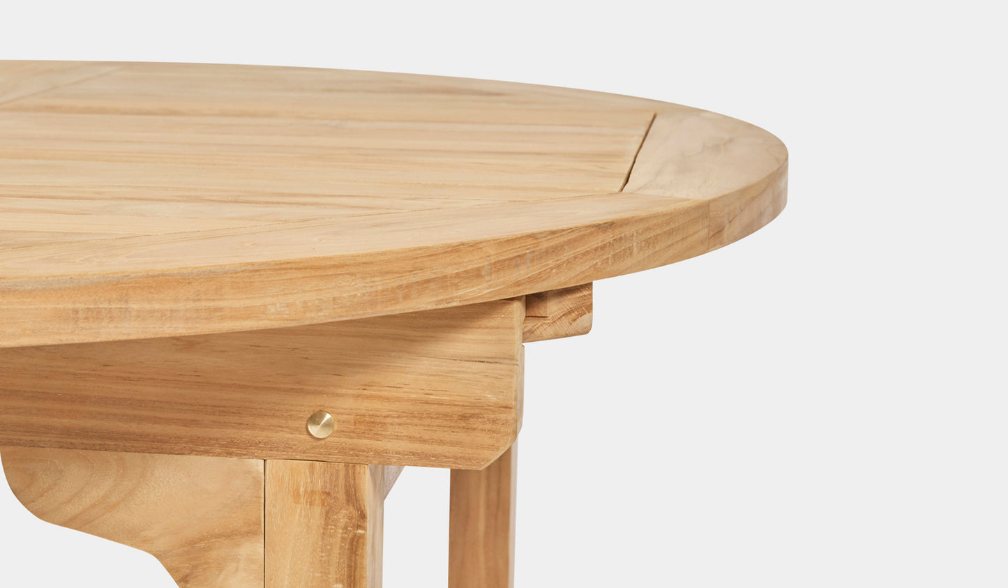 Experience flexibility with our A-grade Teak round extending table! Comfortably seats 4, but can extend to fit 6 or 8 for special occasions. Perfect for smaller outdoor spaces.