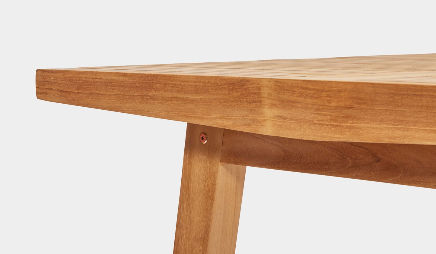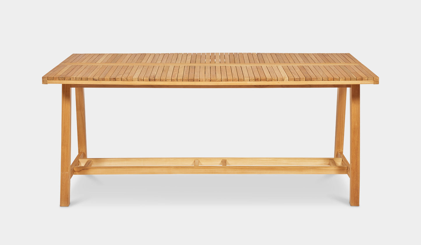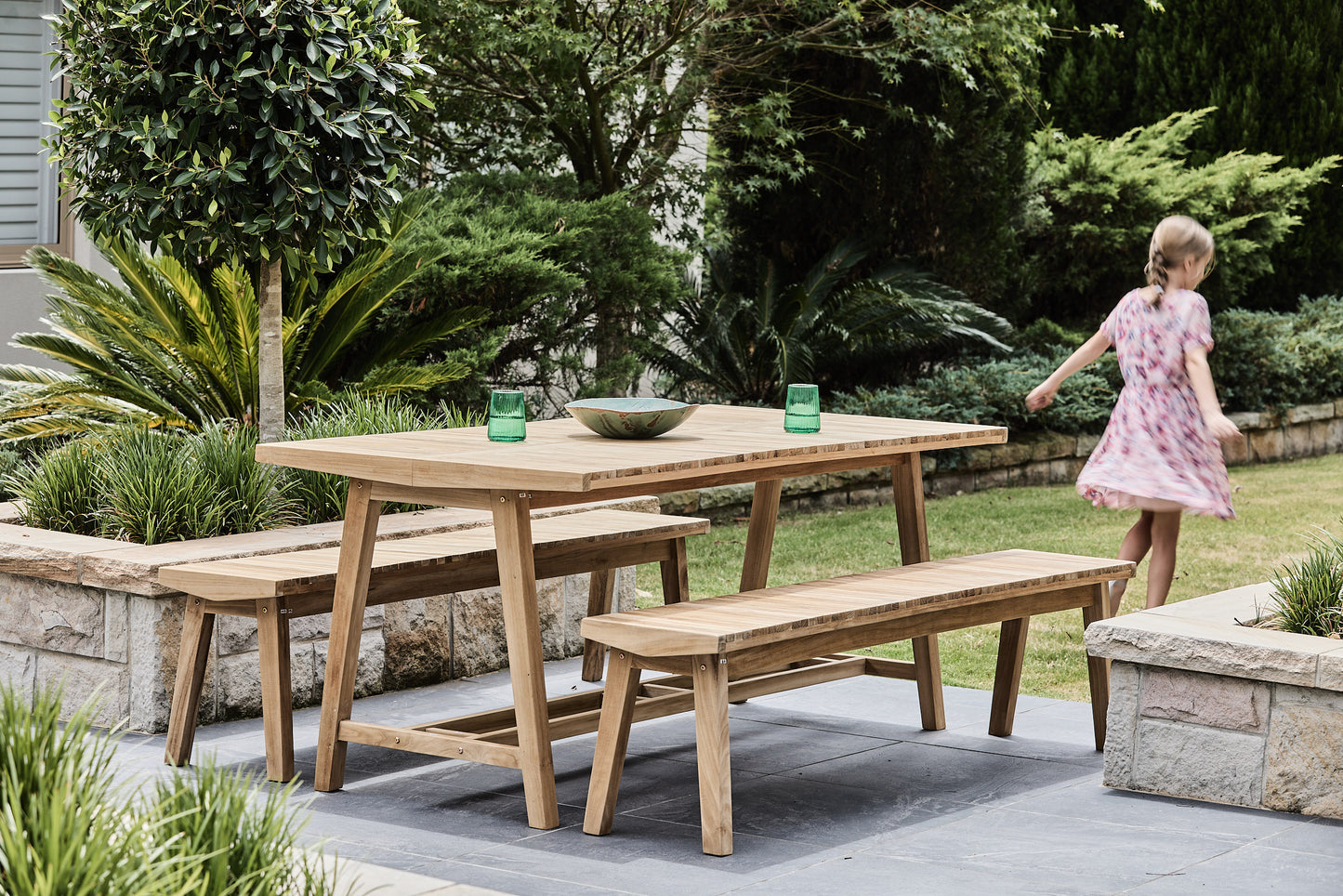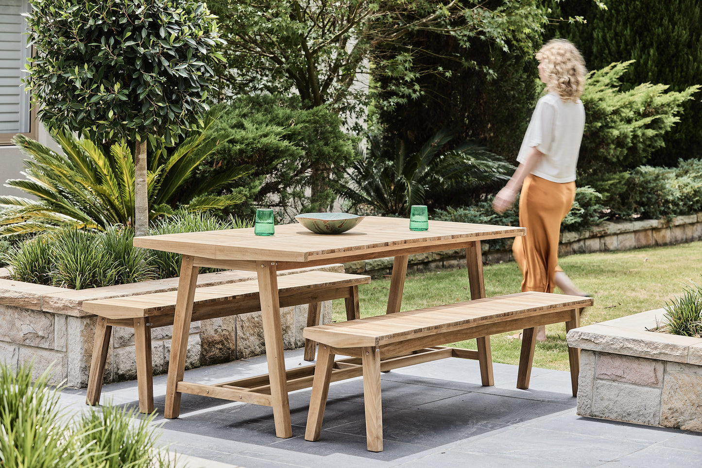 Crafted from solid A-grade teak, the Tempe teak table in 180cm is the perfect choice for those who enjoy taking risks and seeking adventure. The finely sanded natural finish will weather beautifully to a silver grey patina, but for a bolder look, simply high-pressure hose or sand it back to its original form. This table pairs perfectly with the Tempe teak benches in smaller areas and apartments.